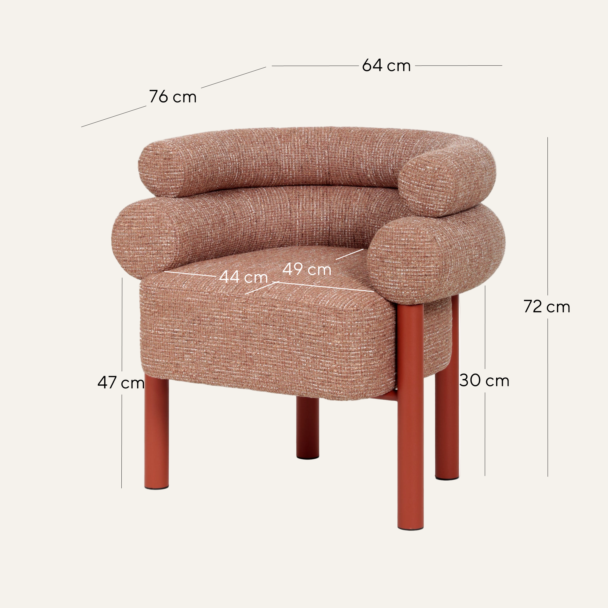 Overall: 64cm (W) x 76cm (D) x 72cm (H) Seat: 44cm (W) x 49cm (D) x 47cm (H) Arm Height: 72cm Leg Height: 30cm