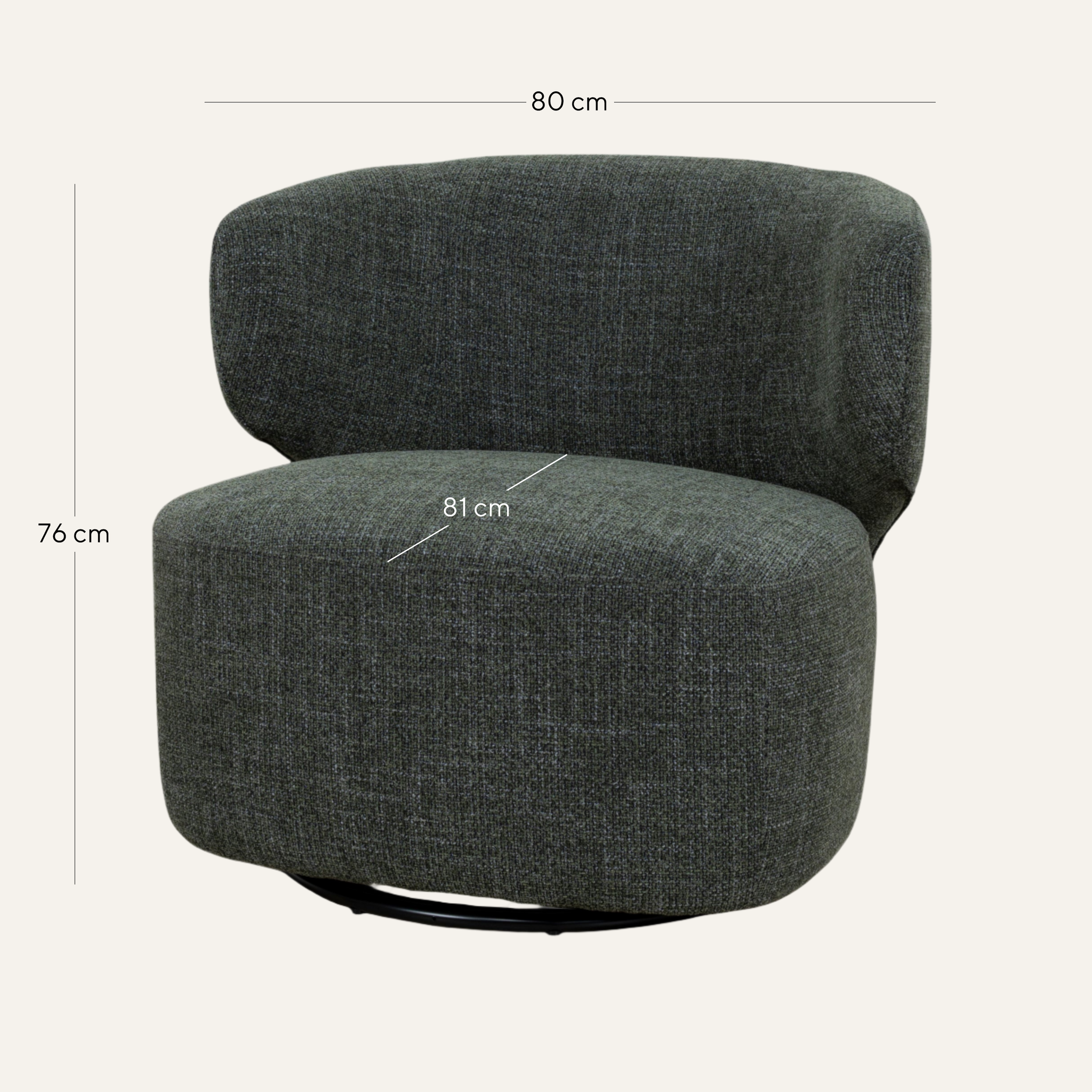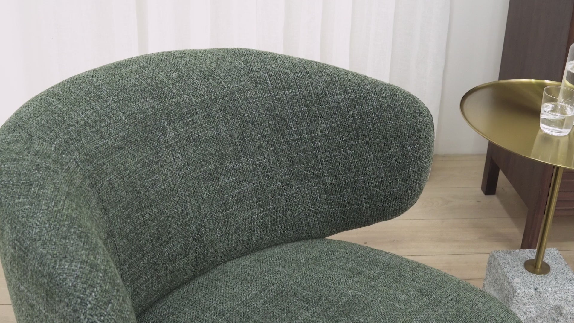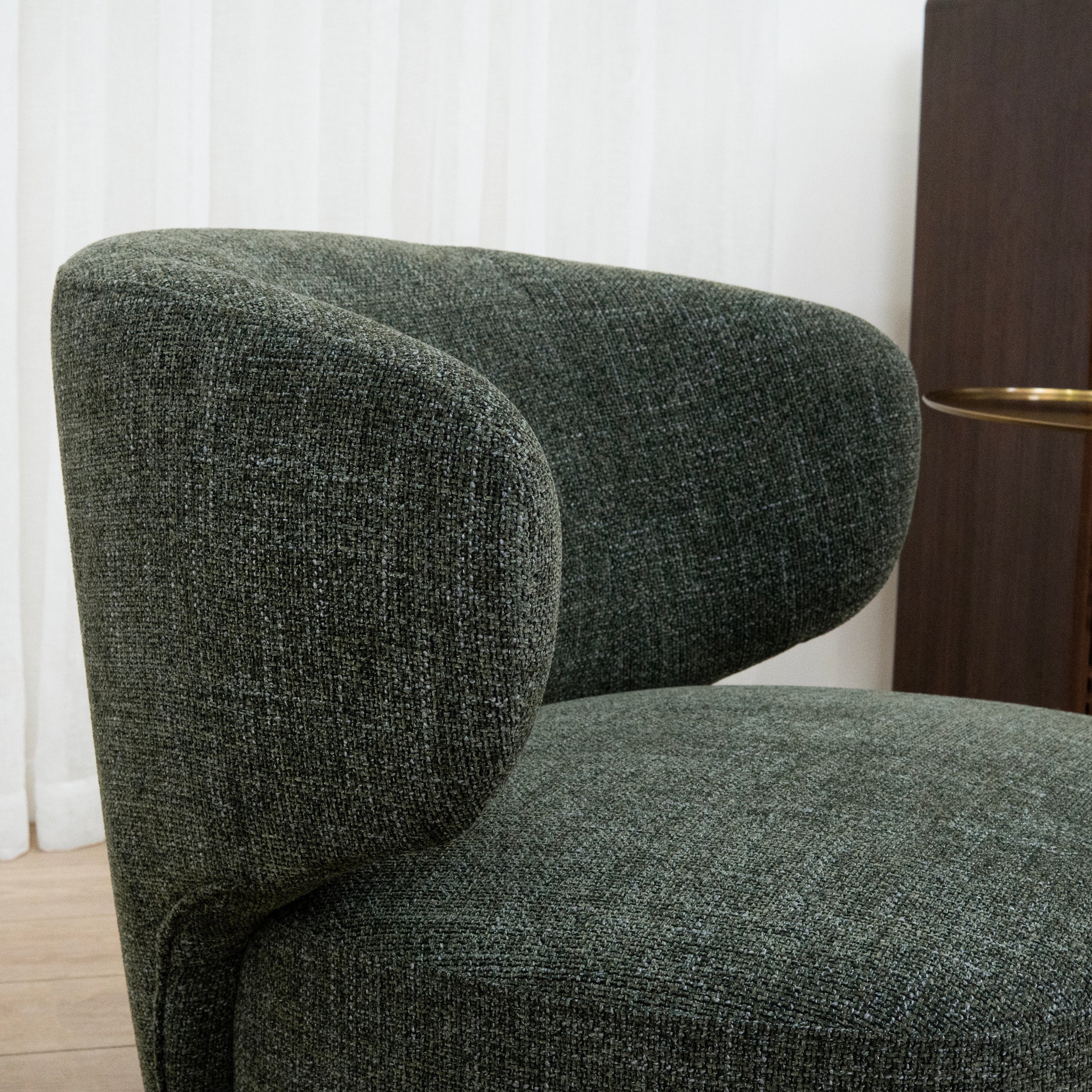The curved backrest seamlessly flows into the seat, creating a striking yet soft profile that looks stunning from every angle. Whether positioned in a corner or styled as a statement piece in your living room, Zenith Swivel Armchair in Moss Green adds an effortlessly stylish touch with its refined tone and understated texture.
