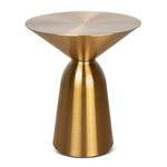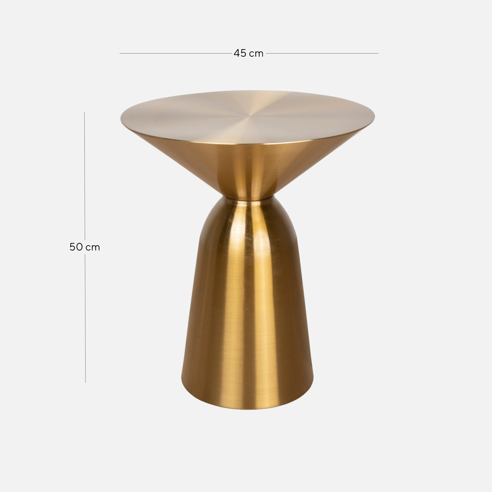 The Zenon 45cm side table exudes elegance with its minimalist design and lustrous gold finish. The round shape is inviting and versatile, offering a soft contrast to the often angular lines of contemporary furniture.