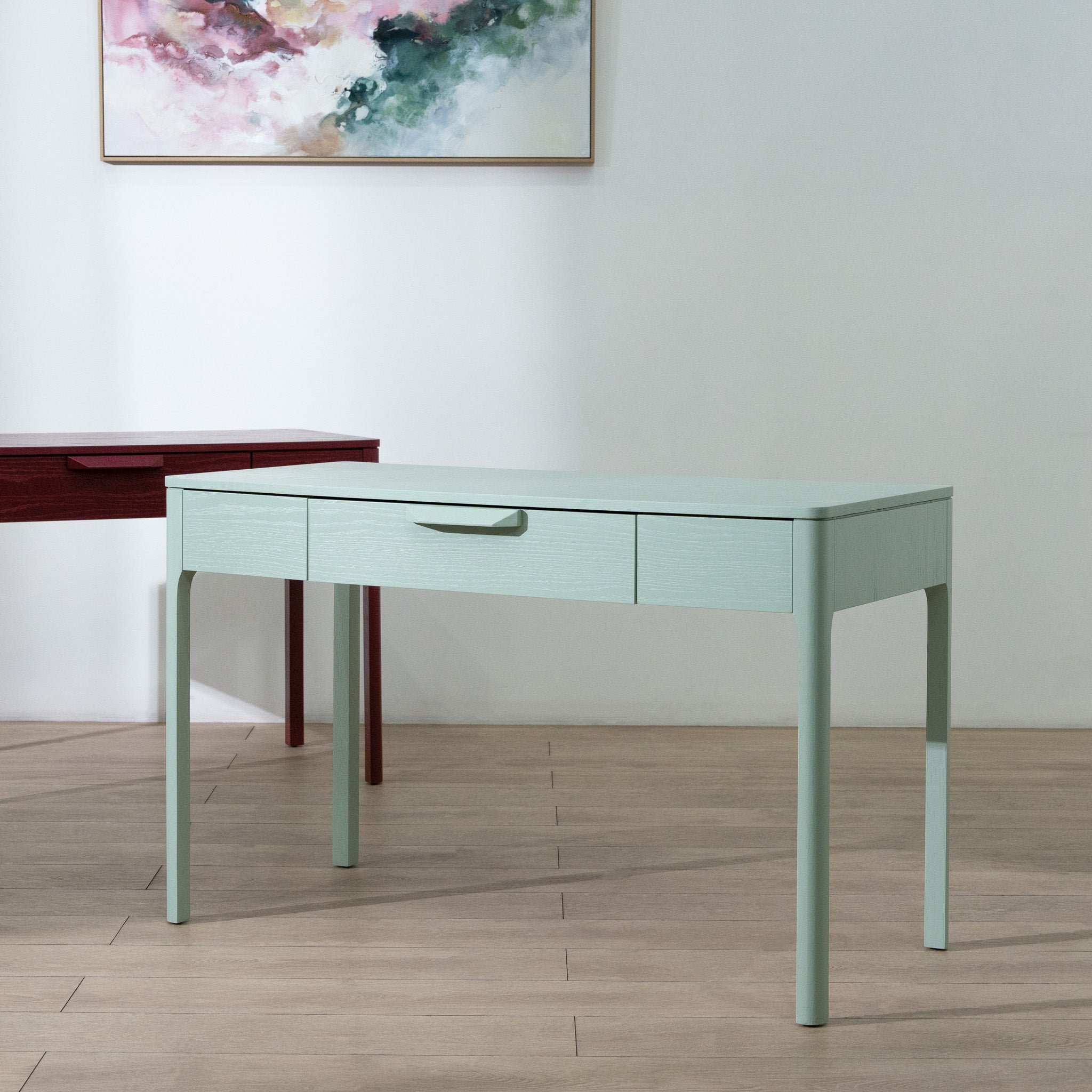 The Zevra 1.2m Home Office Desk in Olive Sage Green introduces a calming, modern presence to your workspace. Its soft green tone feels fresh yet understated, creating a relaxed environment that supports focus without overpowering the room.