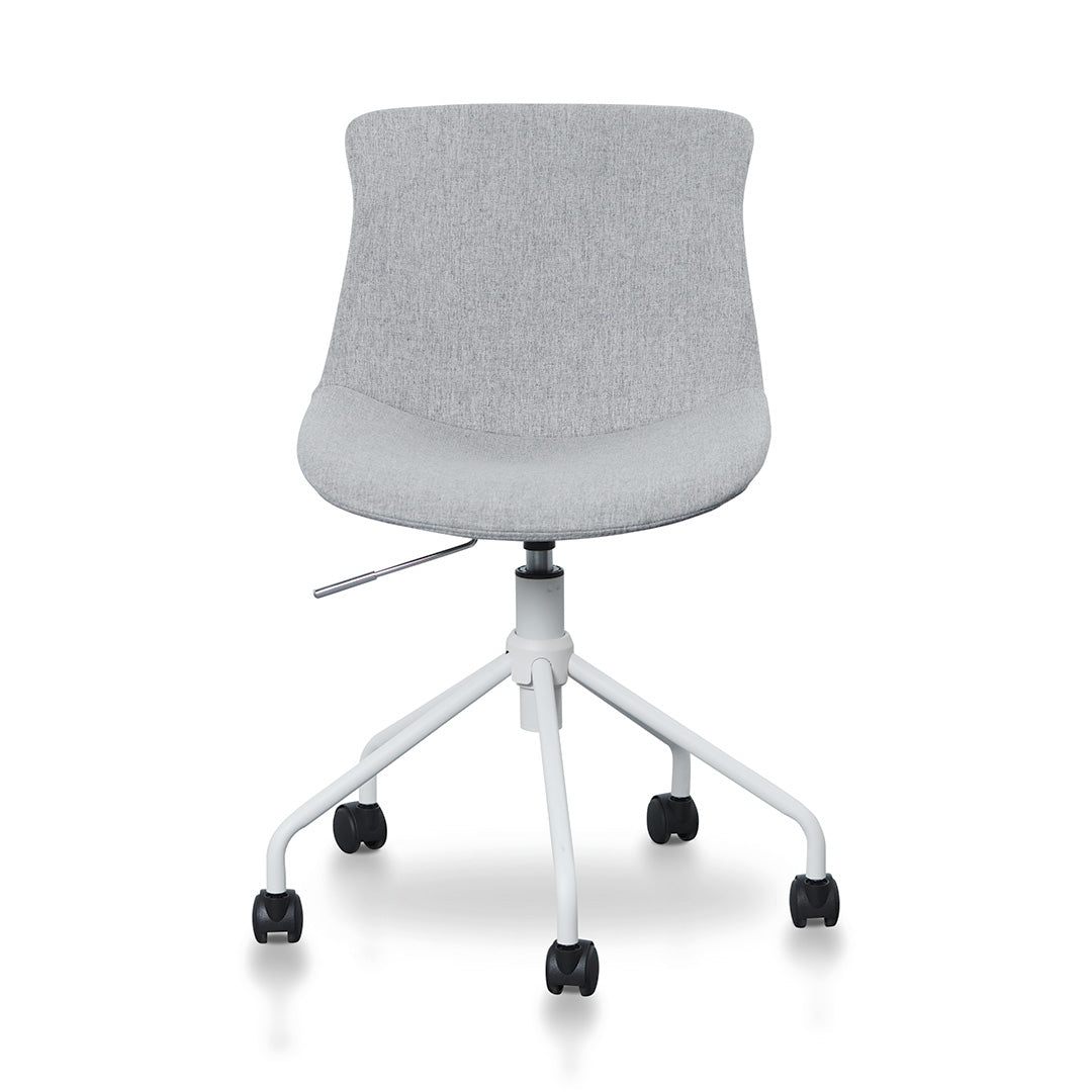 Crafted with medium-firmness padding for a balanced blend of comfort and support, its light grey upholstery and crisp white base bring a refreshing touch of elegance. Perfect for the upscale office, the Zima office chair is the epitome of form meeting function. Get the right office chair to complete the look of your office furniture.